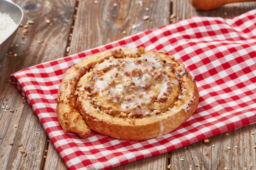 Knusprige Schnecke aus feinem Plunderteig, gefüllt mit einer saftigen Nussfüllung.